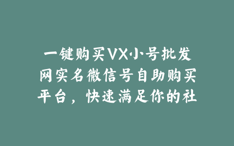然而,随着用户需求的多样化发展,单一的微信账号已难以满足不同场景下的需求,如工作、学习、兴趣交流等。因此,针对这一需求,“一键购买VX小号:高效实名微信号自助平台”应运而生,它为用户提供了便捷高效的解决方案,让每个人都能即时满足自己的社交需求。